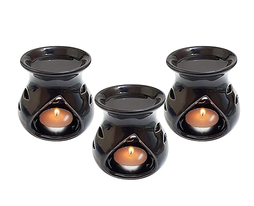 Pure Source India Ceramic Clay Oil Burner Aroma Diffuser (Black) -Set of 2