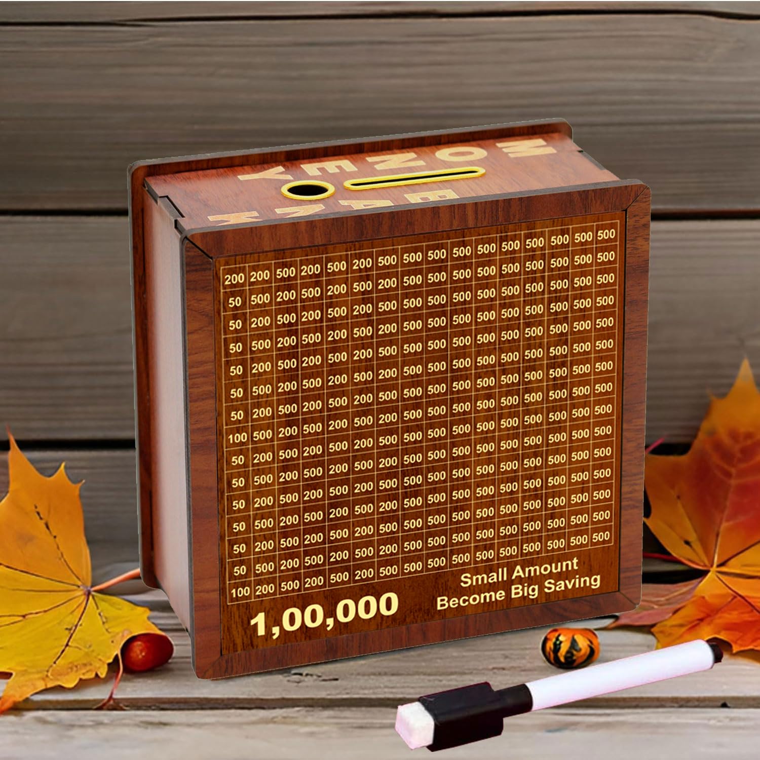 ₹1,00,000 Saving Boxes – Durable, Stylish & Functional | Ideal for Kids, Adults & Collectors | Cash Vault Wooden Coin Piggy Bank