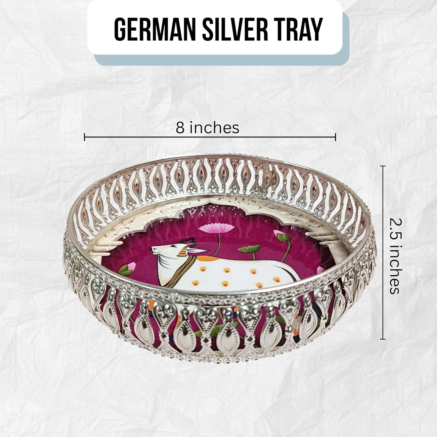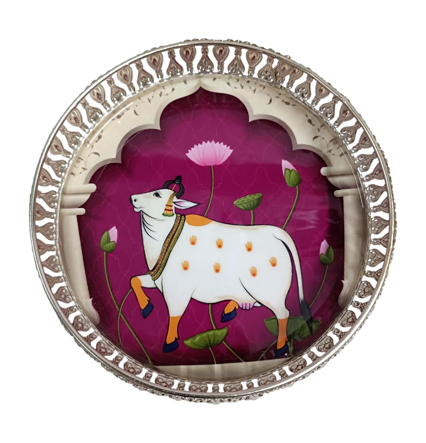 🌟 Premium Silver German Tray – Elegant 8-Inch Pichwai Design