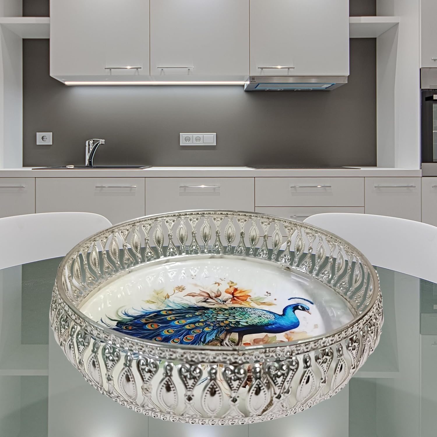 Add timeless beauty to your home with our Premium Silver German Tray, meticulously crafted with traditional artistry and modern precision. Perfect for festive décor, gifting, or everyday luxury.