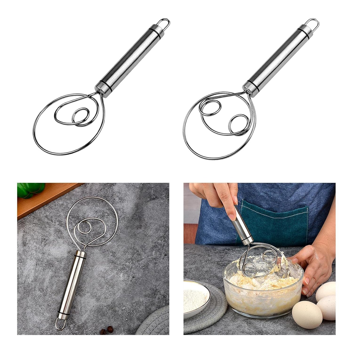 Stainless Steel Dough Whisk – Heavy-Duty Handheld Mixer for Bread, Biscuit, Cake & Cookie Dough – Ideal Kitchen Baking Tool (73g) (2pcs)
